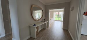 Ce projet concerne la rénovation intérieure d’une maison située à Étrembières, près d’Annemasse. Les travaux ont porté sur la remise à neuf complète des murs en stuc, des boiseries et des plafonds afin de moderniser l’intérieur et améliorer la luminosité des espaces.